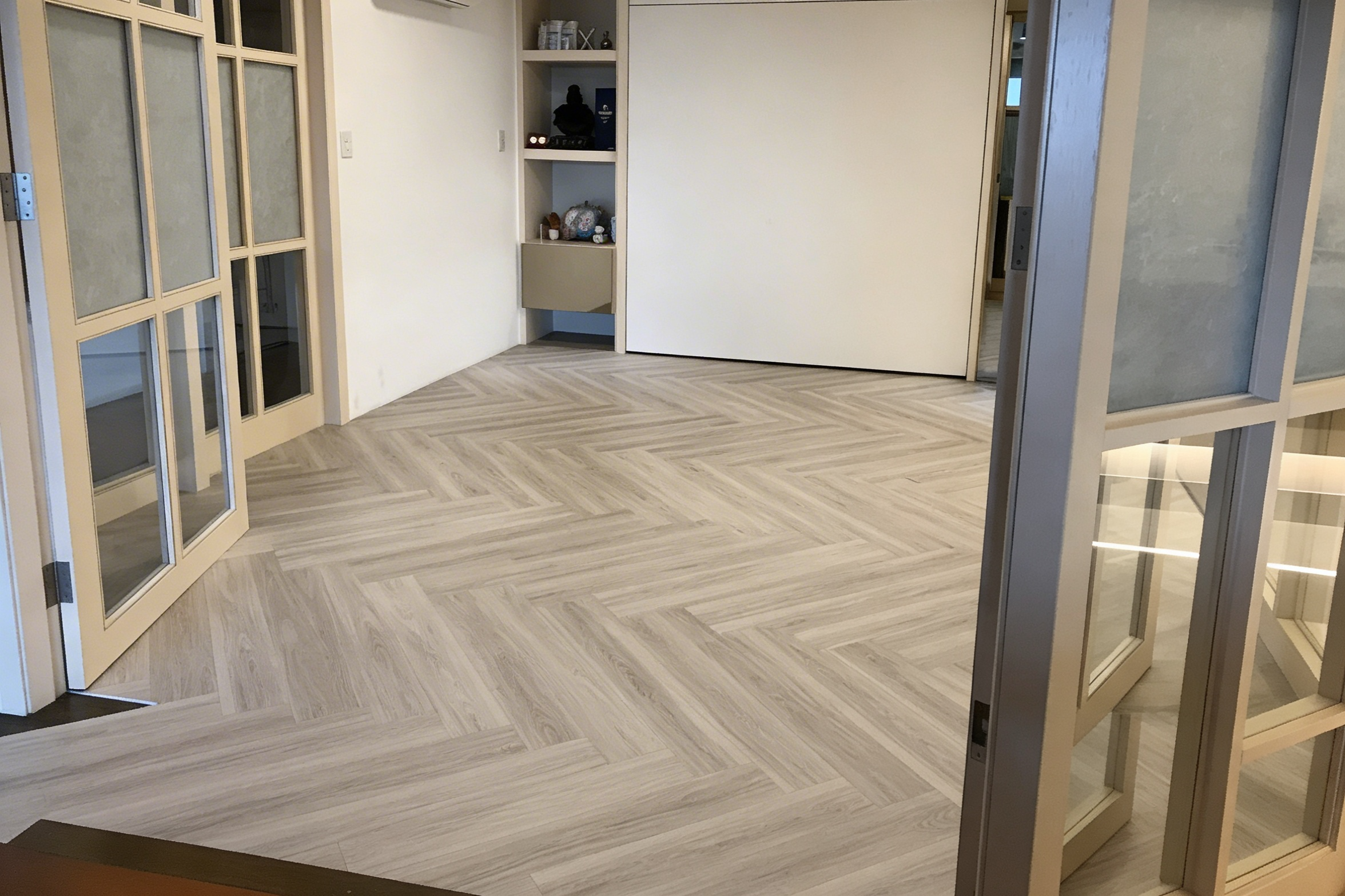 淺灰木紋色讓空間更明亮,也更容易搭配傢俱跟牆面顏色。