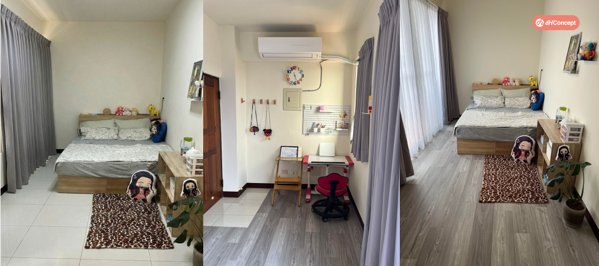 冬天踩到冰冷地板很不舒服,屋主選擇鋪設地板,讓房間溫暖又舒適,同時提升整體空間氛圍,簡單DIY即可完成。